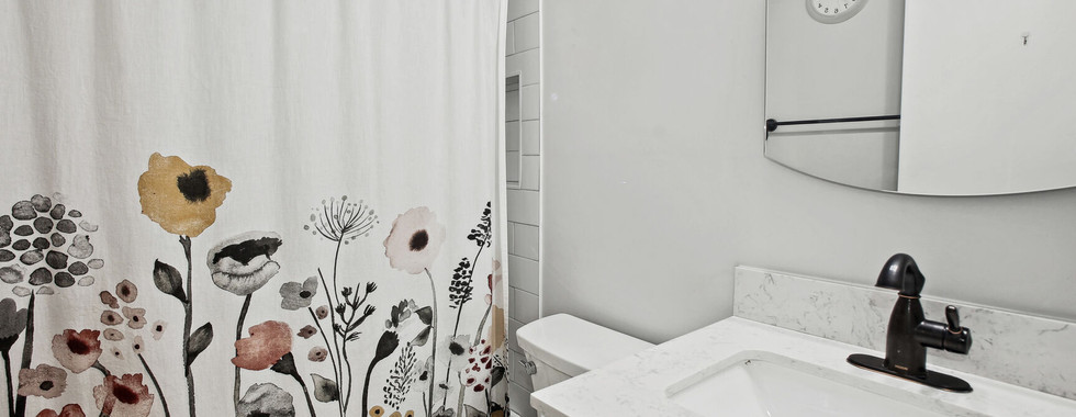 There are gleaming hardwood floors throughout the main level, a bright and sunny living room with large windows and recessed lighting with dimmers. There are 3 comfortable bedrooms and a recently renovated bathroom with white subway tiles, detachable shower head and wall niche.